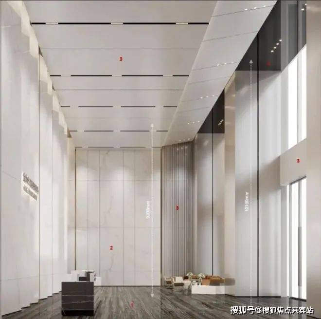 【大堂高度及面积】3层挑高约10米,建面约300㎡