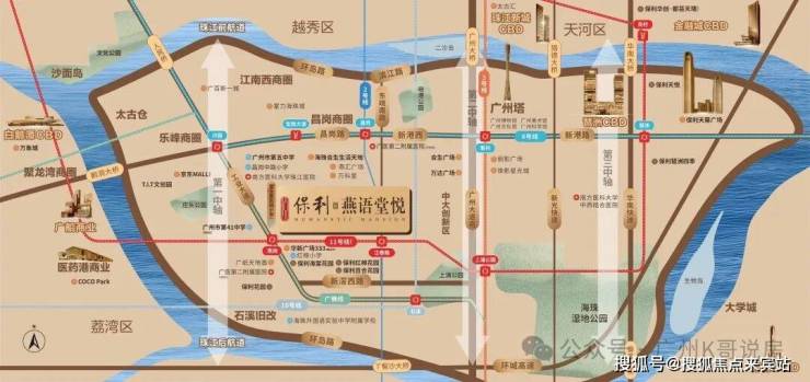 紧邻工业大道主干道,向北接昌岗中路、内环路,向南5min接驳新滘西路、环城高速,交通路网发达,20min+速达广州核心区。