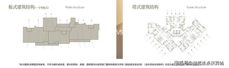 ×塔楼:混合朝向,并非户户朝南,户型间存在遮挡,容易产生对视,室内空气流线差,换气效果相对较差。
