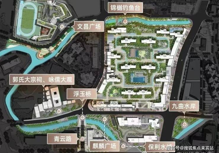 项目将为片区打造约40万方亲水滨河商业带,成为与水岸相融合的生活美学综合体