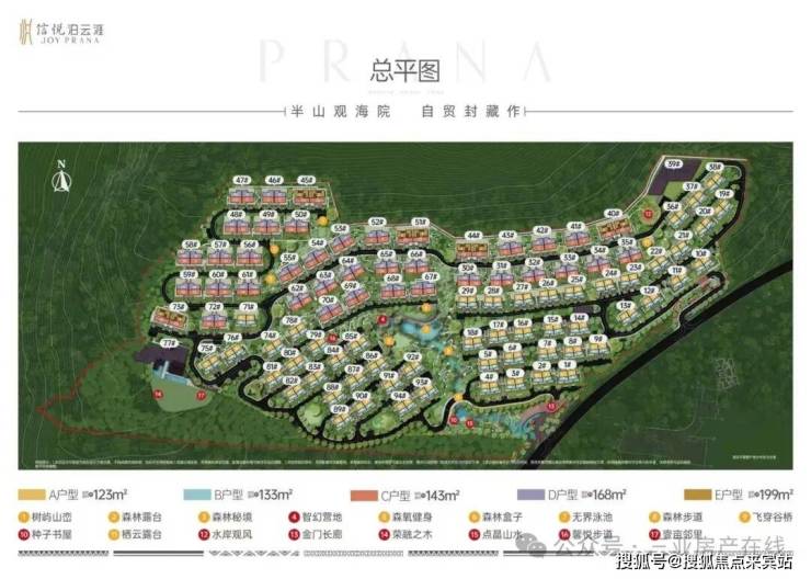 项目因地制宜采用退台式设计,结合山地高差阶梯铺排创新院落,有天有地有景,容积率仅约0.28,产品规划为建筑面积约123-199㎡海涯院落,以纯粹低密之境,重新定义海涯院落的边界。