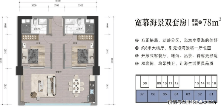 ◎8米超大横厅 ◎ 双套房设计 ◎格局方正