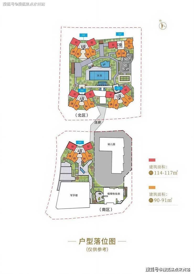 建筑栋数:北区包含1栋4座塔楼,南区包含1栋3座塔楼