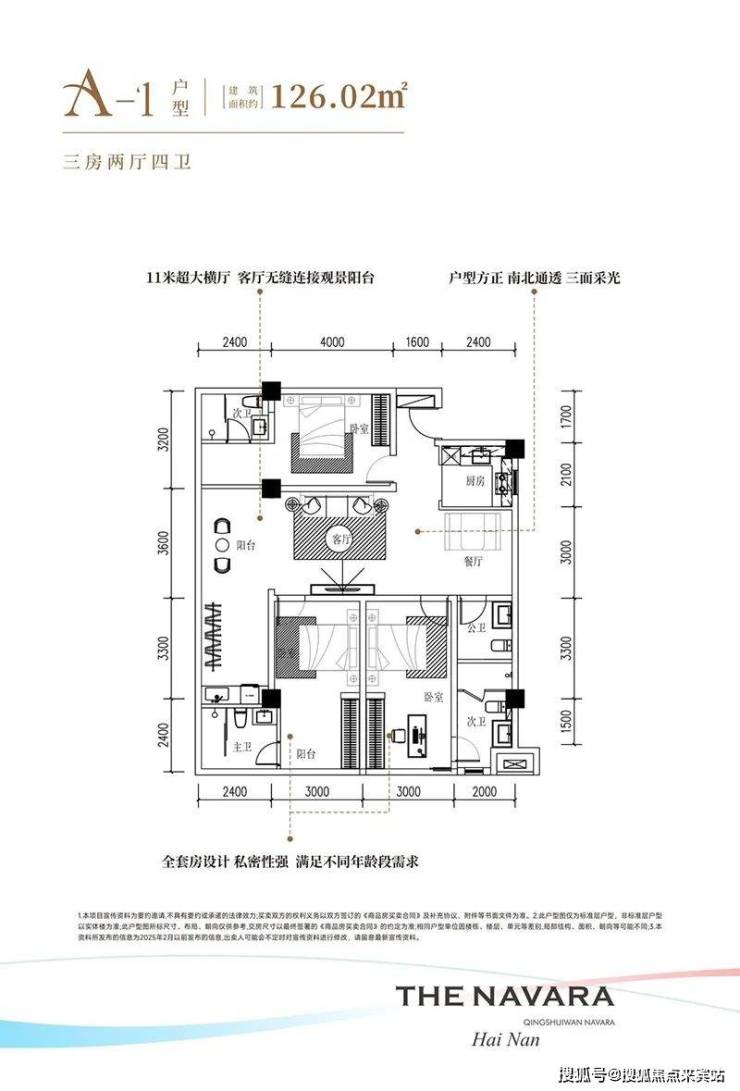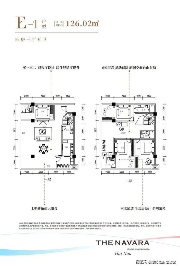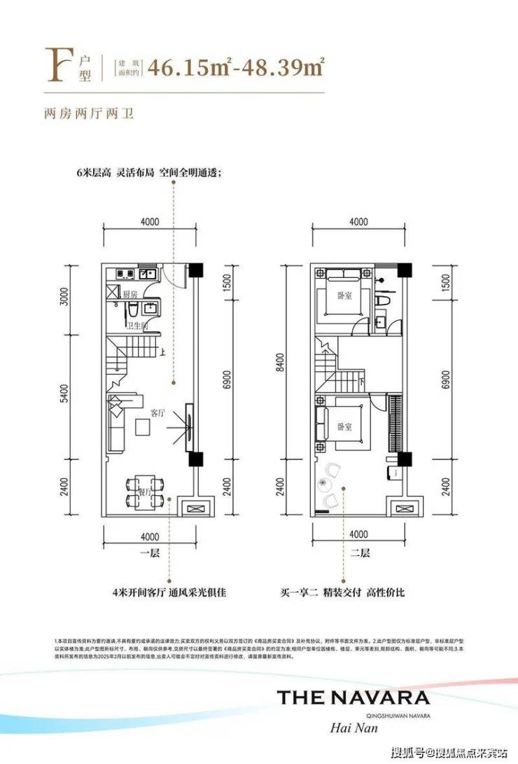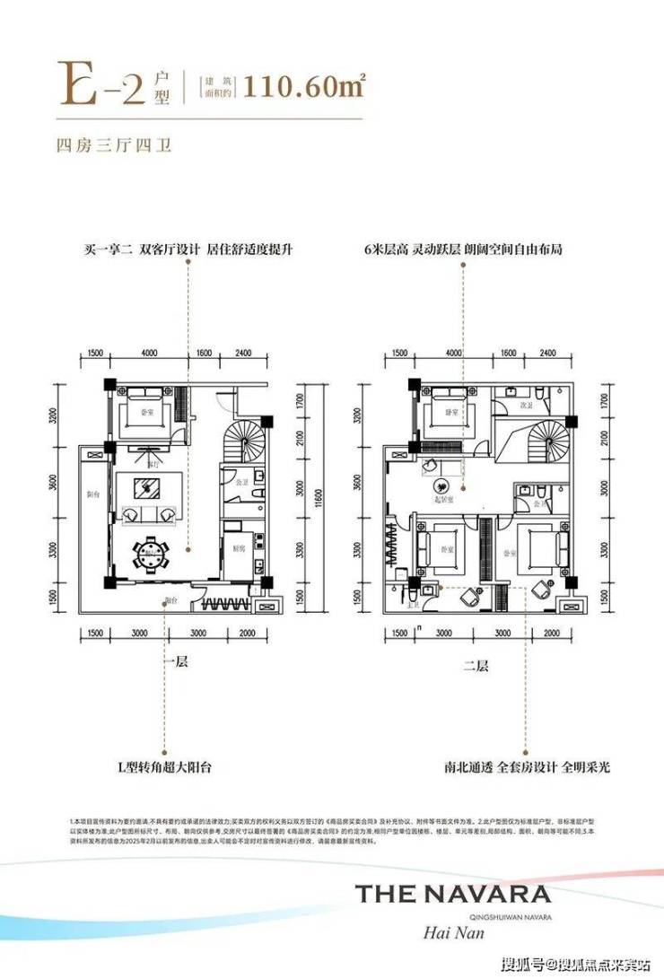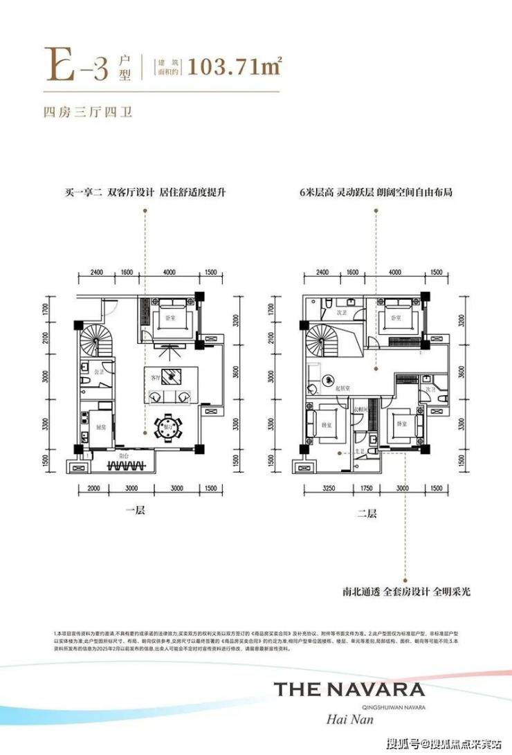 清水湾•纳瓦拉项目深谙现代人的居住需求,推出了层高3.4米的平层和层高6米买一层送一层的LOFT两种产品,其中平层建筑面积约46平一房一厅一卫、建筑面积约97平两房两厅一卫、建筑面积103-110-126平三房户型、LOFT户型为建筑面积约46-48平实得92-96平两房两厅两卫、建筑面积约103-110-126平实得约206-252平四房户型,户型设计方正,打造全明空间,让阳光与清风自由穿梭。环岛瞰景阳台更是将美景尽收眼底,让业主在享受舒适居住的同时,也能领略到清水湾的无限风光。