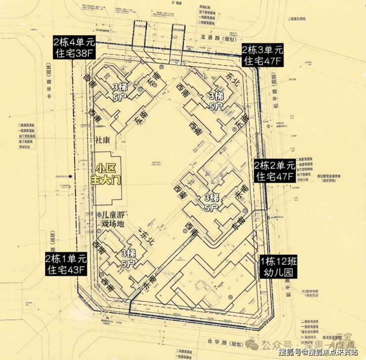 总规划约2573户,其中商品房2075户,公租房498户,3梯5户或3梯6户设计,规划有2315个车位,车位配比约1:0.9。