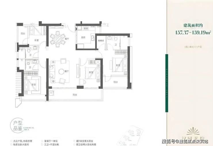 159㎡4房2厅3卫:1条腿,位于1栋5单元东南向,看塘朗山景,阳台设置的比较满,基本赠送做足了,双面宽主阳台,双套间,家里有老人住进来一点压力都没有,4个卧室有三个都有阳台,确实挺爽。