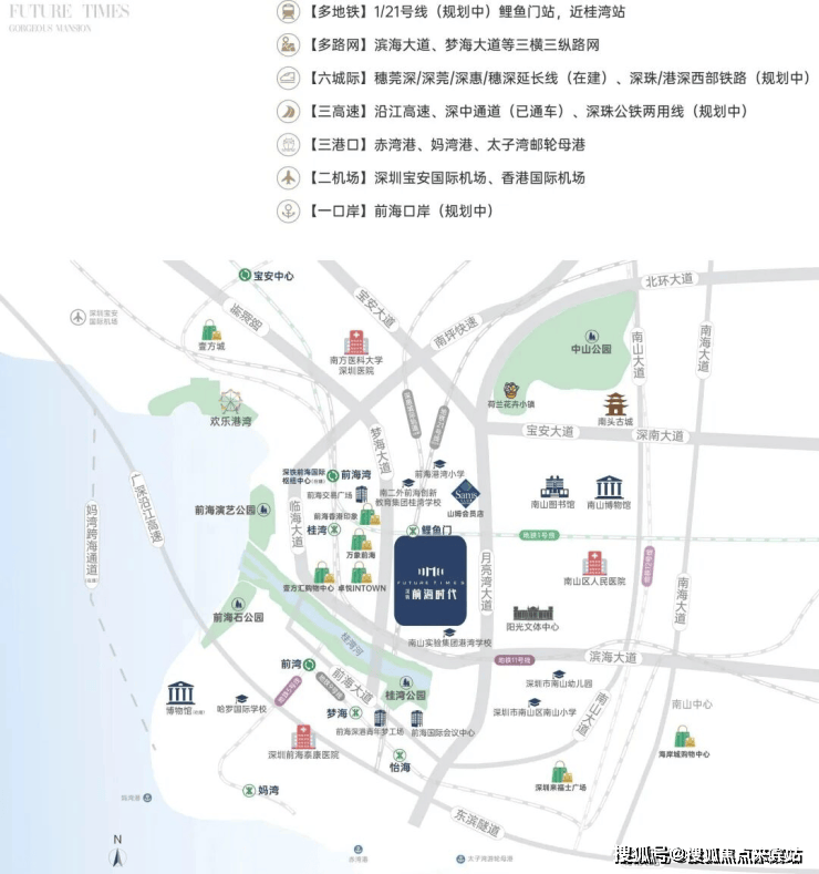 路网交通方面,项目紧邻月亮湾大道、滨海隧道、梦海大道连接前湾、妈湾、宝安中心,出行便利。