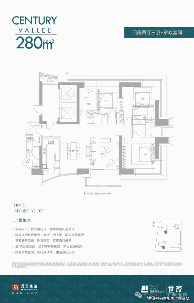 🔸建面约280㎡ 四房两厅三卫+家政套间