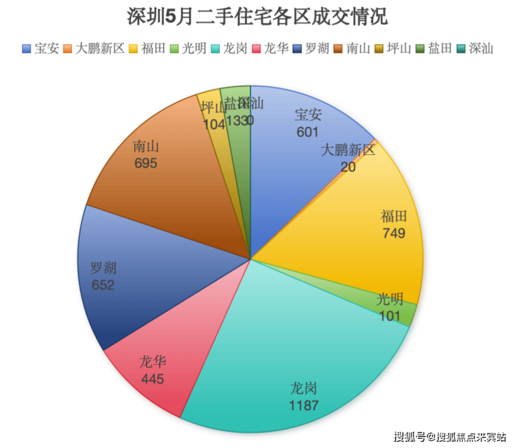 5月,二手住宅成交情况,龙岗1187套(唯一破千区域) 福田749套 | 南山695套 | 罗湖652套 | 宝安601套 | 龙华445套 | 盐田133套 | 光明101套 | 坪山104套 | 大鹏新区20套 | 深汕合作区0套