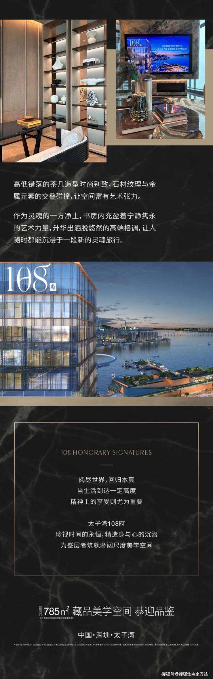 太子湾108府位于南山蛇口太子湾片区,游轮大道西面,总占地1.2万平方米,建面约3万平,集邮轮母港、总部办公、顶级商业、高端居住、五星级酒店、文化艺术国际学校、国际医院等多元业态于一体。世界级国际滨海综合体,在售面积约185-384平2-4房,精装交房。