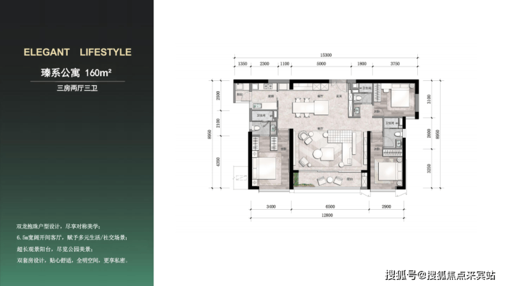 本次推出的嘉悦产品,仅130席,户型为约160㎡3房和约228㎡4房,主朝向西南向看公园,高区可眺望整个前海天际线和海湾景观。