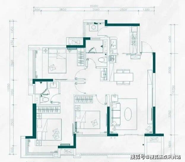 F户型:145-150㎡五房两厅两卫