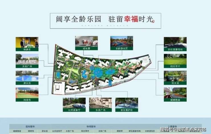 小区配备网球场、游泳池、大面积活动绿地以及在园林里设计了6大活动主题,分别为户外会客厅、童梦时光、儿童MINI运动场、花园中心、成人运动中心、700米夜航跑道。