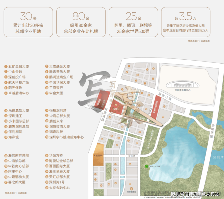 后海总部基地,地处粤港澳大湾区几何中心,是链接深圳各核心功能区的关键节点,是大湾区资源密度最高、制度最开放的总部经济聚集地,创富密度全国榜首,世界500强领袖级总部集群。深圳湾澐玺,全球核心城市的臻稀资产。(数据来源:深政观察)