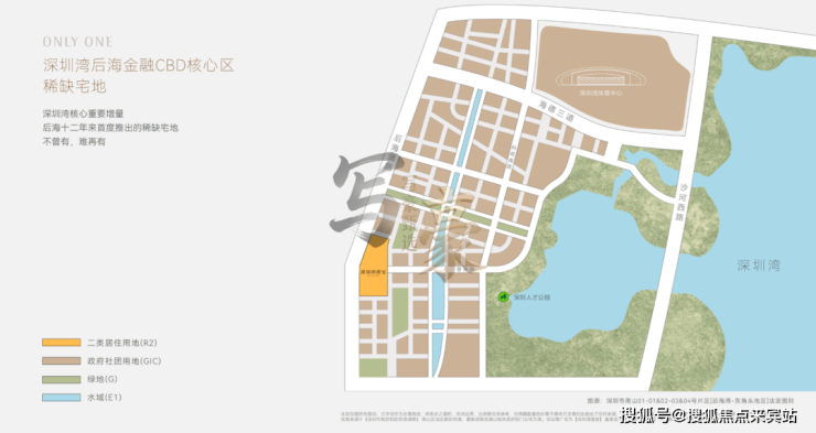 项目位于深圳湾后海总部基地,是片区近12年来唯一出让的住宅用地,也是规划中近乎最后一块含住宅的地。约2.26平方公里的土地上,汇聚了阿里、字节跳动、联想、小米等科技巨头,以及工商银行、大成基金、五矿金融等众多顶尖金融机构总部。项目南临香港、北靠科技园、东连福田CBD、西接前海,地理位置在深圳乃至粤港澳大湾区中占据着绝对优势。