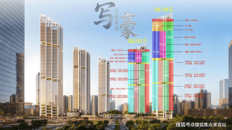 容积率较高(7.59),最高楼栋达250m,低楼层户型景观视野受限(建议选25层以上),价格门槛极高,总价3000万起。