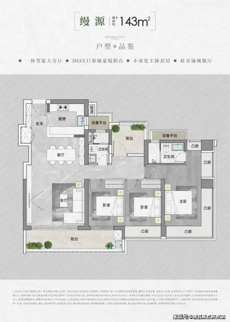 我们再来看最大的143平大4房户型: