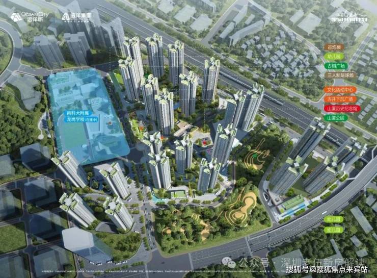 项目自带1所9班制幼儿园,旁边规划在建1所九年制公办学校,目前已经透露是南方科技大学附属实验龙岗学校,在2025年秋季开学。