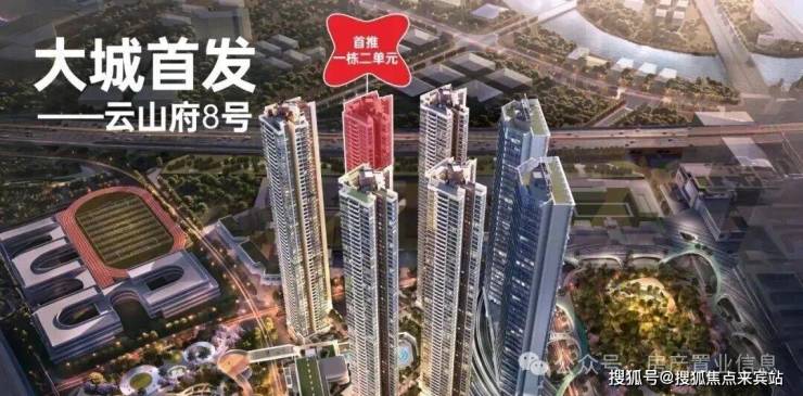 本次首推的08地块,备案名:未来平方云山府,由鸿荣源集团打造,共分3期建设,总占地面积约2.73万㎡,总建筑面积约37.41万㎡,计容建筑面积约27.51万㎡,容积率9.23,绿化率32.01%,共由5栋58-59层高住宅组成,其中1栋1单元住宅59F,1栋2/3单元住宅58F,3栋1单元/2单元住宅58F,4栋1/2单元写字楼35F,2栋是1所18班幼儿园,配建有公交首末站。