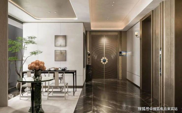 独梯入户尊贵仪式:专梯入户,让归家成为私享;独享玄关走廊空间,可打造约5.2米超长玄关柜。
