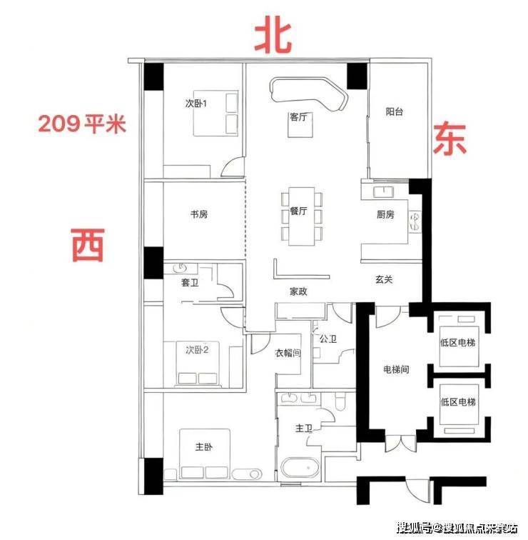 ——低区 4F起(150米以内)是约209-304㎡四房大户型;