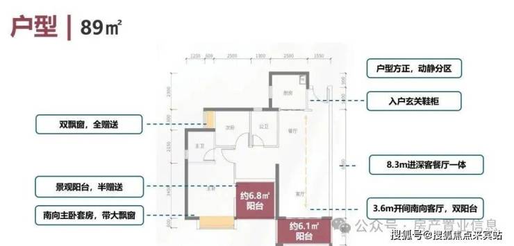 建面约80㎡的户型开间就有约3.5米,格局方正、动静分离、空间开阔、采光充足。基本上达到了市面上90㎡以上户型的尺度。