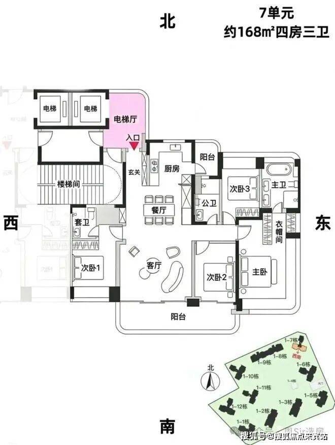 7单元,24层,层高约3.15米,3梯3户,约143/168平,可售69套。