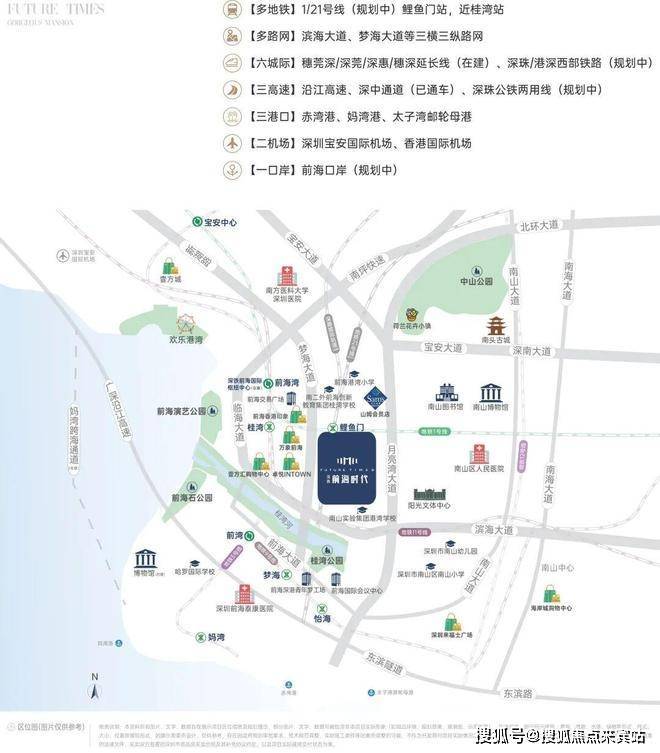 坐拥海陆空轨多维交通,通达湾区城际及全球主要城市引领大湾区国际化生活方式。