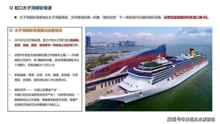 屹立太子湾之上,聚集海陆空轨立体交通,蛇口邮轮母港通达全球,深圳湾口岸高效过境,真正实现粤港澳大湾区一小时商务生活圈