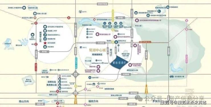 鹏瑞颐璟府位于龙华区观湖街道鹭湖科技文化板块,坐落于观澜高新园区范围内。项目距离坂田华为、天安云谷不到五公里。(数据来源:百度地图)从项目出门就是五和大道,距离坂田华为大约只有4.3km(数据来源:百度地图),不塞车情况驾车大约10分钟就能到。小塞一会大概15-16分钟也能到了