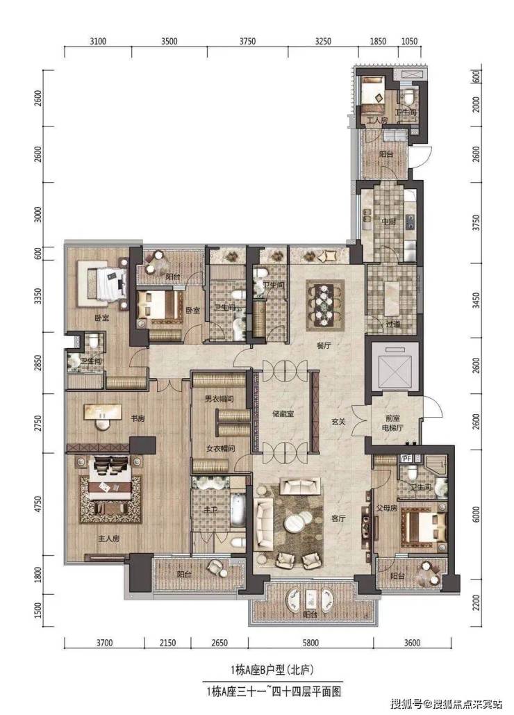 A座:A321㎡5+1房5卫 南北通 4阳台