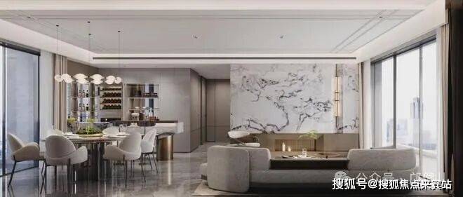 LDKB设计的无边际餐客厅,大气感扑面而来,宴请四方来客、亦或是大家族的聚餐,都毫无压力。