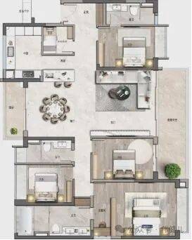 约200㎡四房两厅三卫: