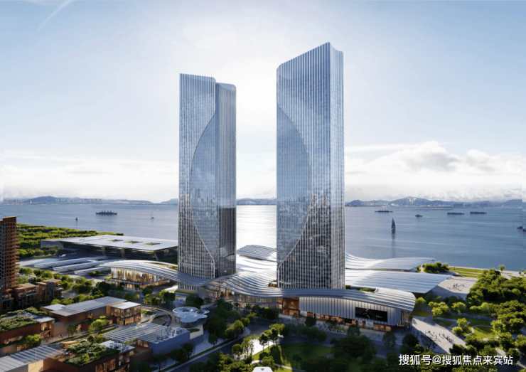 第一,湾中新城规划有超高层建筑双塔“未来之门”,含约4.5万㎡五星级酒店,约25万㎡甲级写字楼。该建筑在造型设计上极具美感,同时有着深刻的寓意,以“未来之门”对望前海,就如同中山向深圳打开了大门。