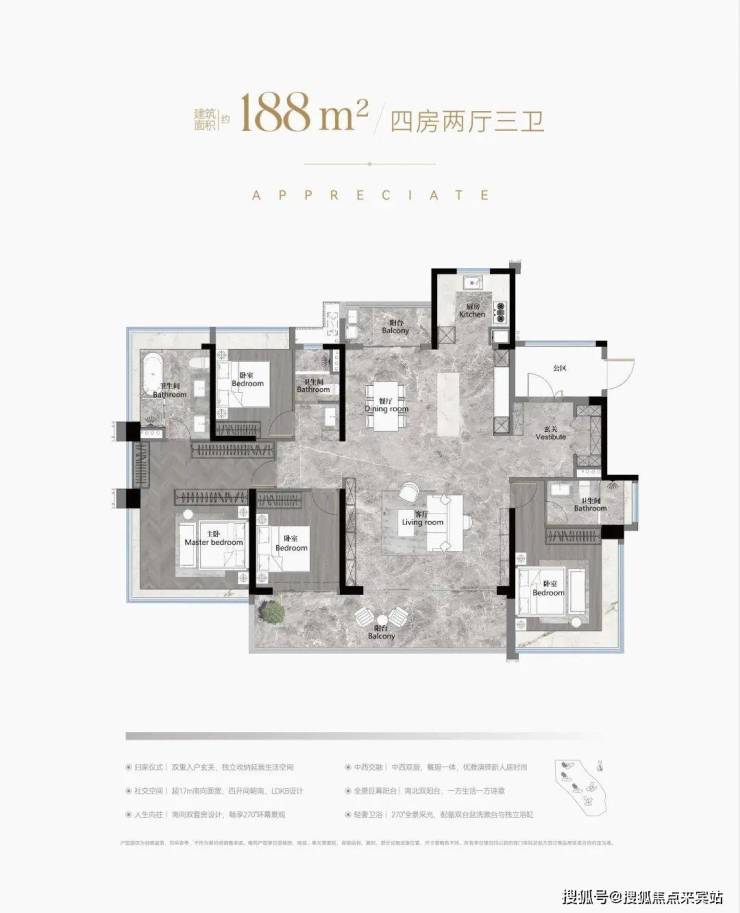 ·整体围合式布局,确保每户拥有南向景观,通风采光俱佳
