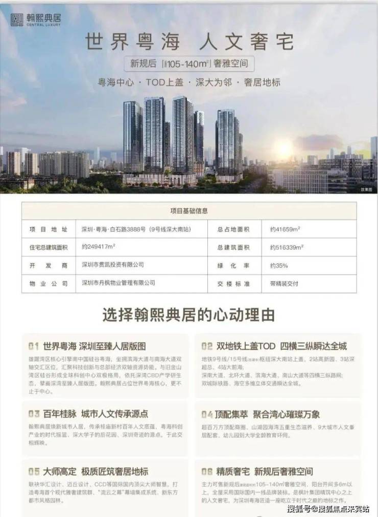 翰熙典居项目坐落在“深圳最牛街道”——粤海街道,一侧是深圳大学,另一侧是大厂云集的南山科技园,建面近37万平,其中住宅约25万㎡,未来将会打造成集住宅、商业、办公等于一体的大型综合社区。