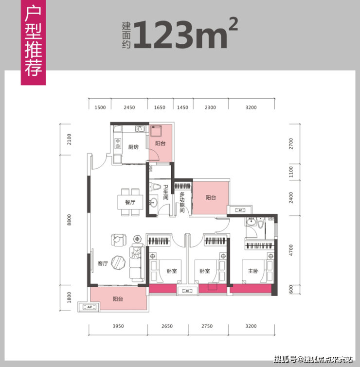 端头位:总赠送约270㎡,总面积达450㎡,赠送率160%;花园面积约100㎡