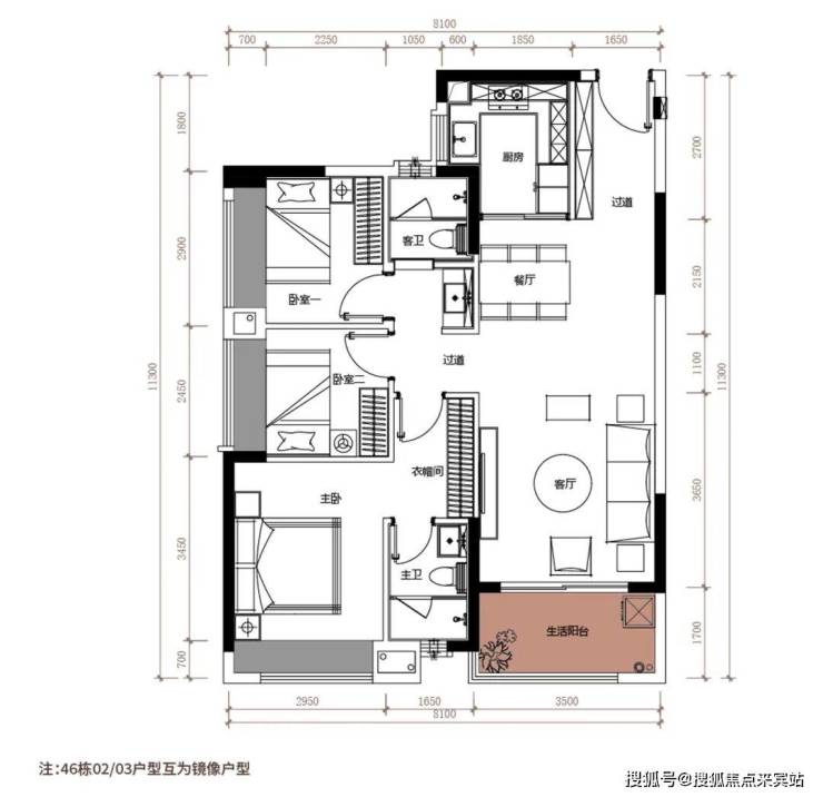 户型采用双卫+双卧飘窗全配置,创新花池设计提升生活逸。