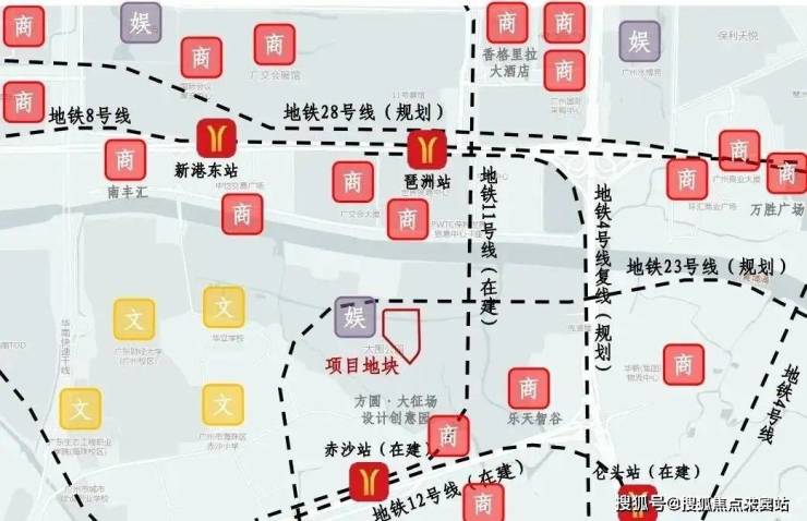 项目距离广州地铁8号线和11号线的琶洲站仅900米,步行即可到达。