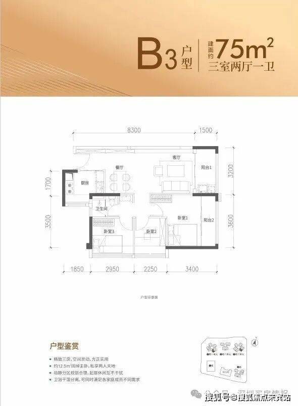 75㎡的3房2厅1卫,折后总价303-354万/套,折后单价4.07-4.73万/㎡。