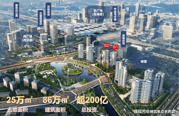 项目介绍:总用地面积约为25.1万㎡,总建面约86万㎡,总投资超200亿