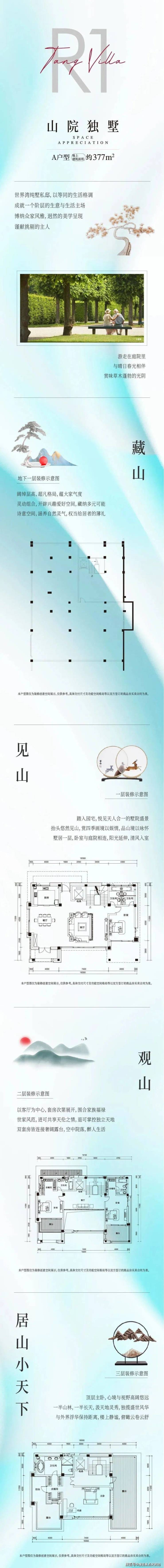 地上面积范围约212-377㎡ (地上三层地下一层)山海纯独栋