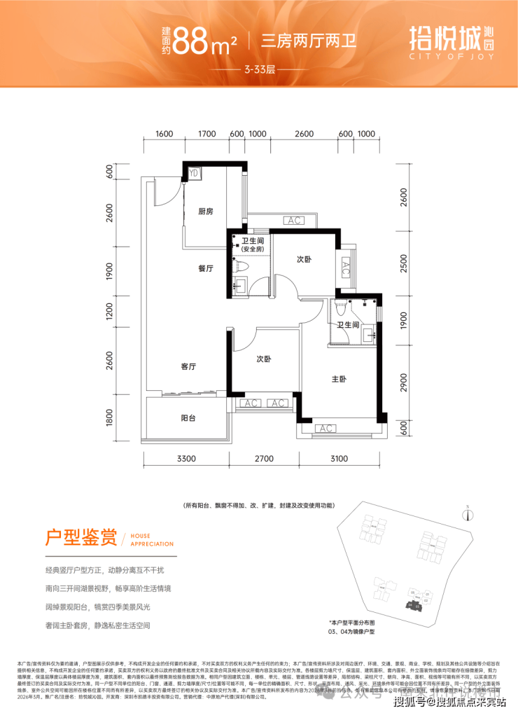 【全能户型】:建面约85-89㎡满配三房,通透采光 + 实用布局,适配家庭成长需求。