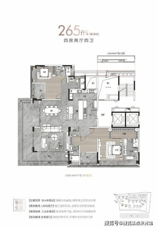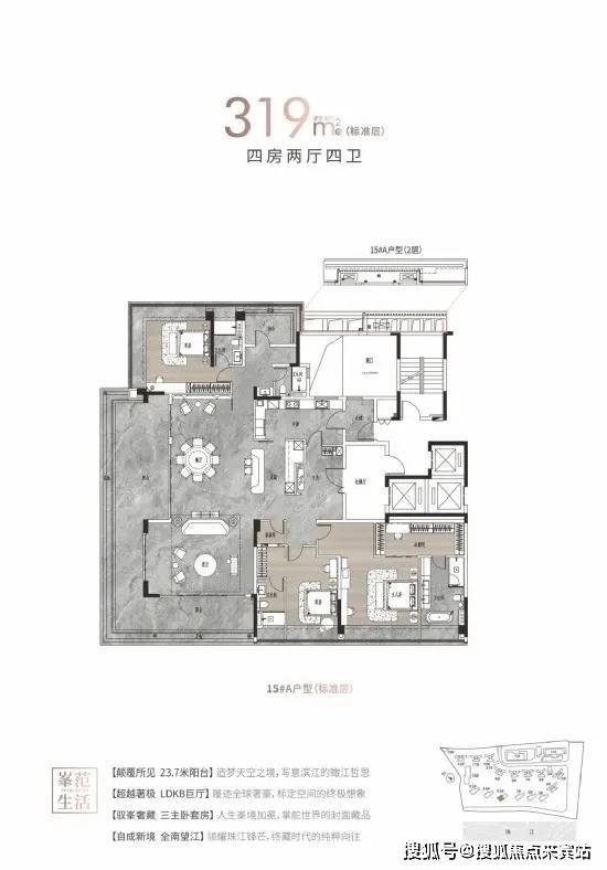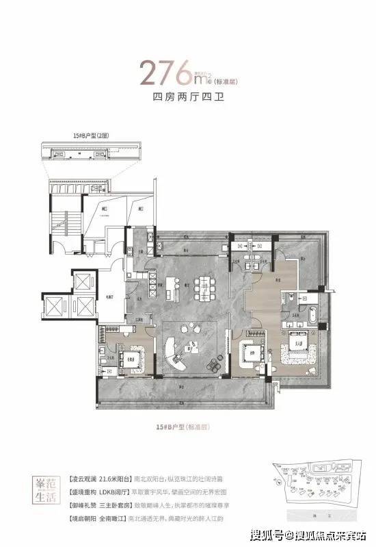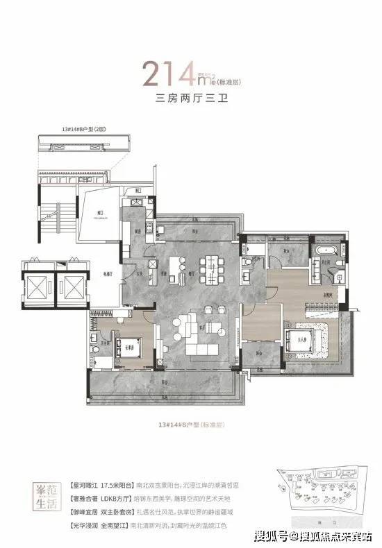 【户型面积】建面约125-142㎡四房两厅两卫/214-313㎡大平层