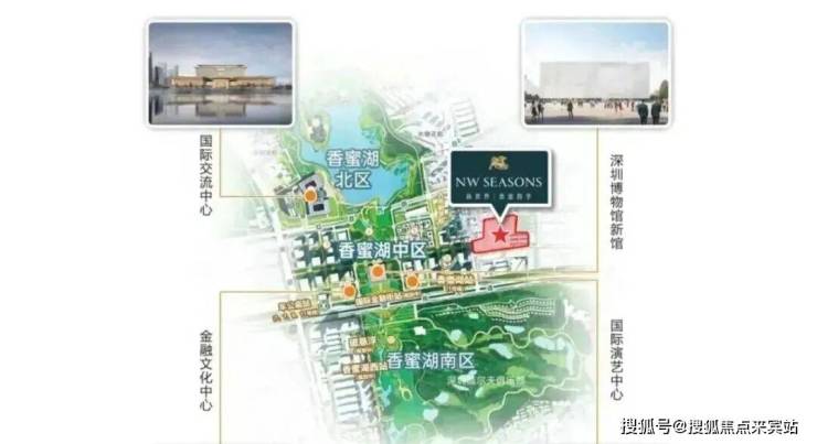 项目位于福田中心区景田片区,紧邻香蜜湖金融中心,周边汇聚了福田顶级的配套,西南是国际演艺中心和高尔夫俱乐部,西北处是香蜜湖,东面则是市民中心、深交所。