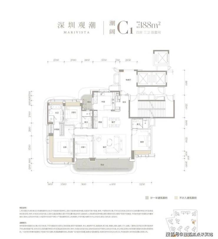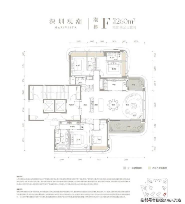 首推产品最小143㎡起,主力户型为188-260㎡,还有500㎡顶复产品,圈层纯粹,电梯配比上做到2梯2户或3梯3户,实现一梯一户,私密性极强。 5. 双央企品质背书
