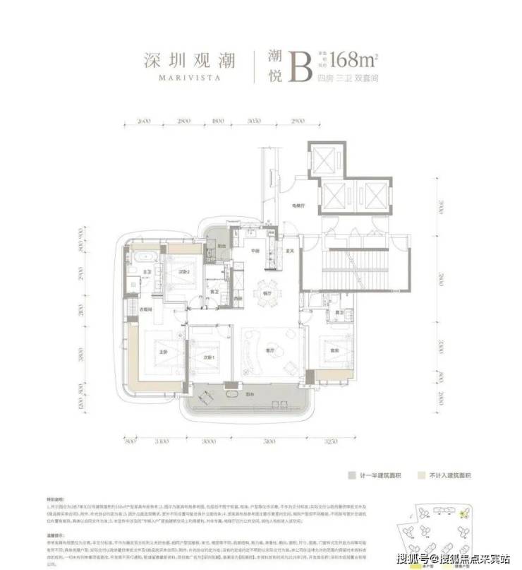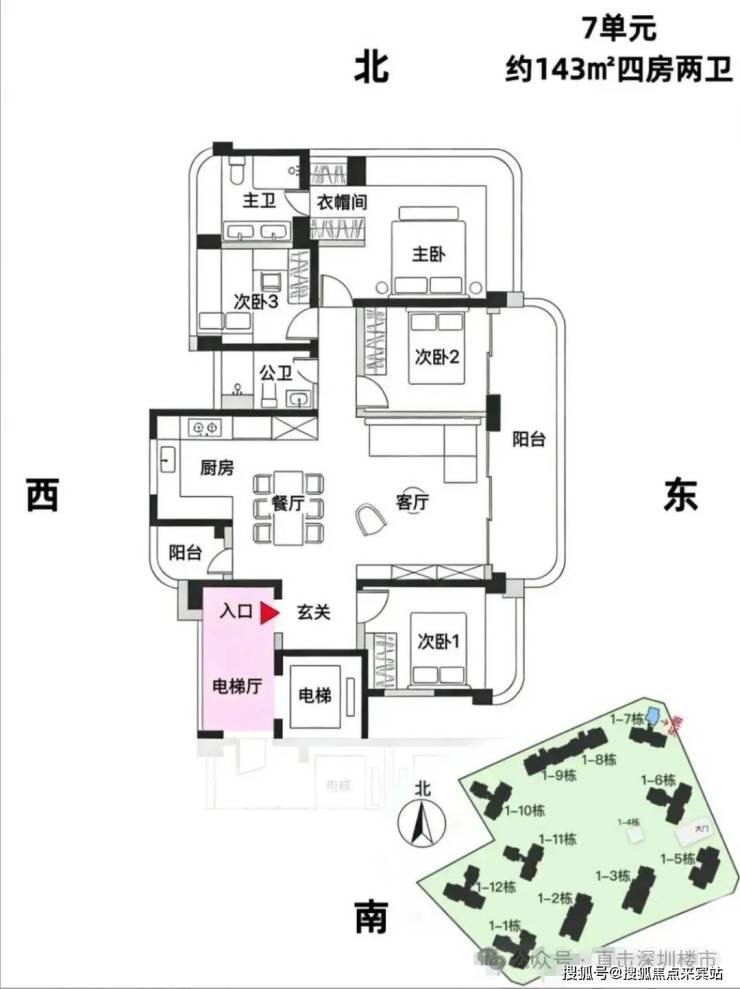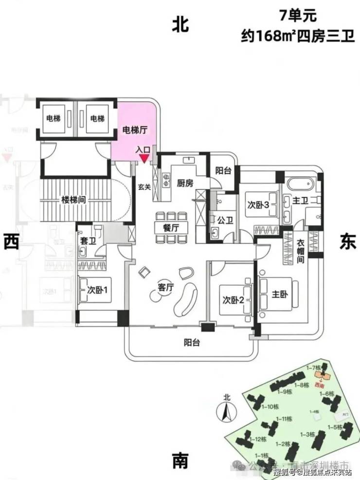 7单元:23层3梯3户、层高3.15m、约168㎡4房3卫(双套房双阳台)