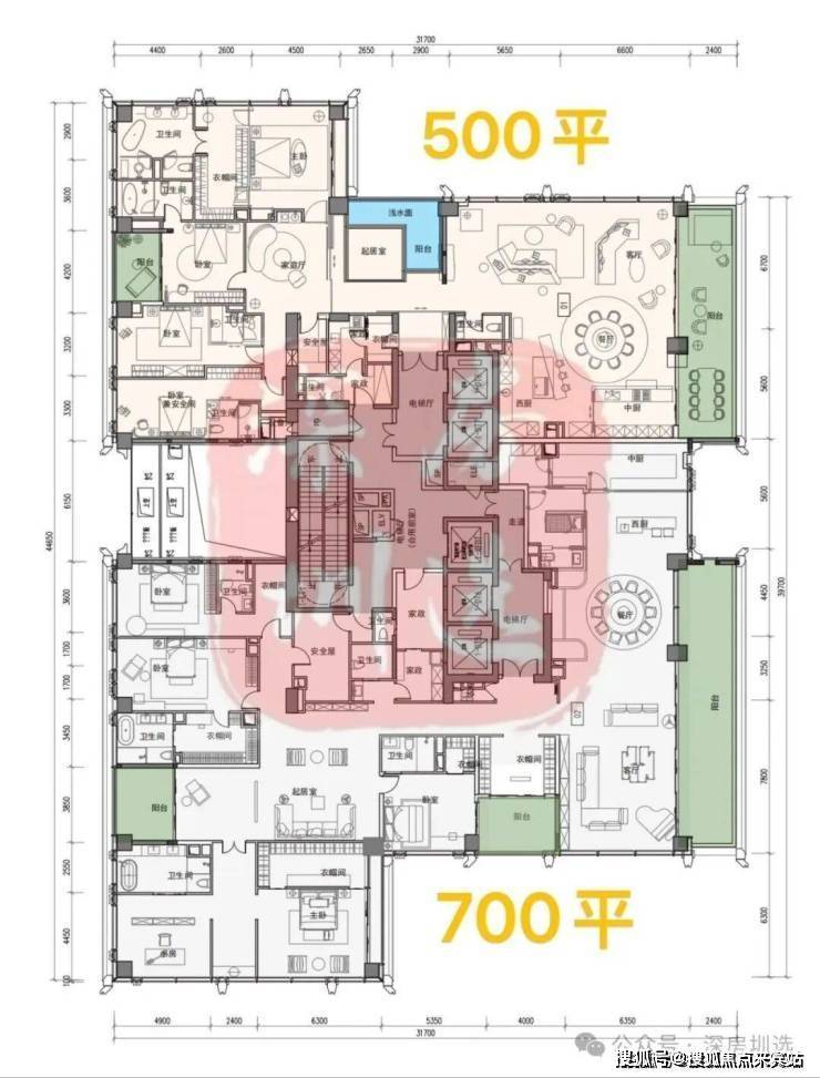 ③超高区58F起(200米以上)是约500-700㎡顶级大平层;