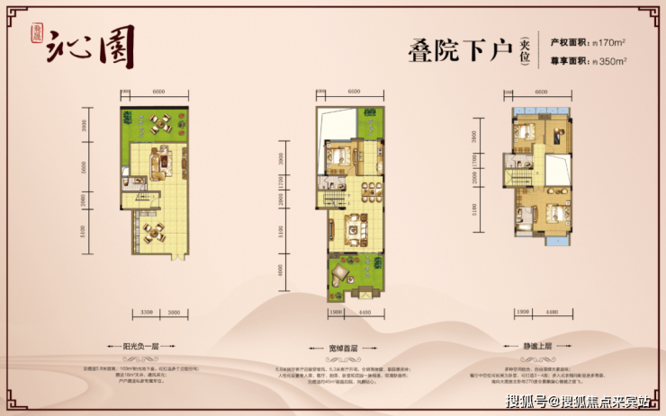 上叠院:产权面积170/223方,顶层有个超大的多功能空中花园,可聚会、休闲、赏月、品酒、烧烤、种花草…
