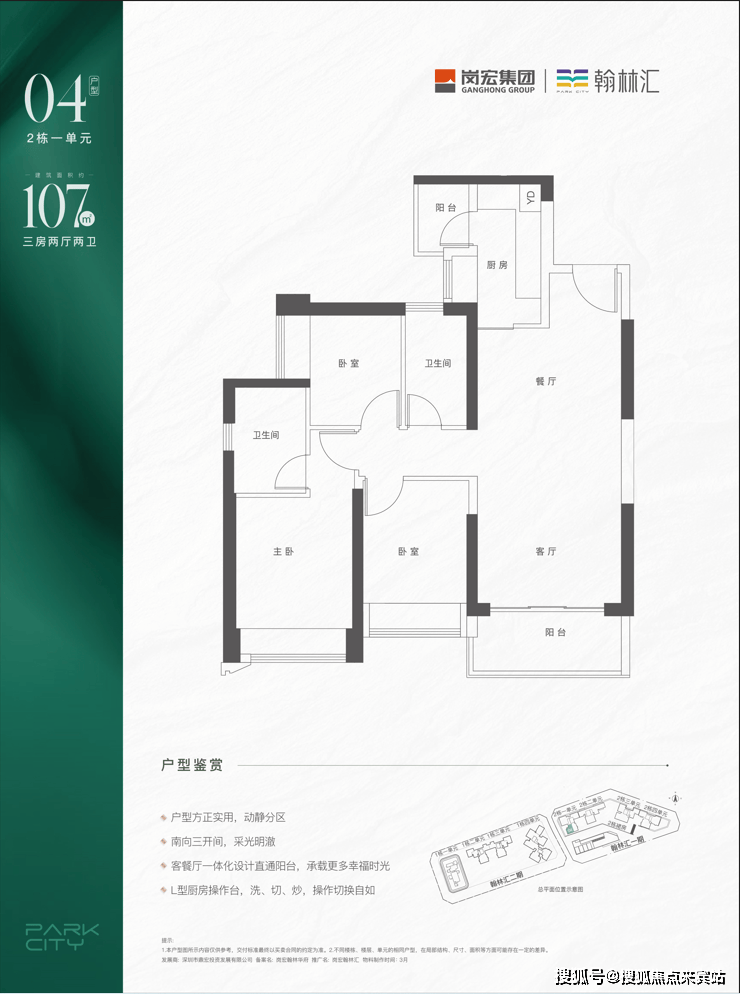 岗宏翰林汇项目总建面约47万㎡,分三期建设,包括住宅、写字楼等产品,并配建有幼儿园、9年制公办学校和约5万㎡商业中心。项目由01和02地块组成,首推02地块一期,由两栋46层高(3梯5户)超高层建筑和两栋32层高高层(2梯5户)建筑组成。建面约74-131㎡两到四房户型产品,主推两至三房为主。整个项目1640套住宅,车位1956个。
